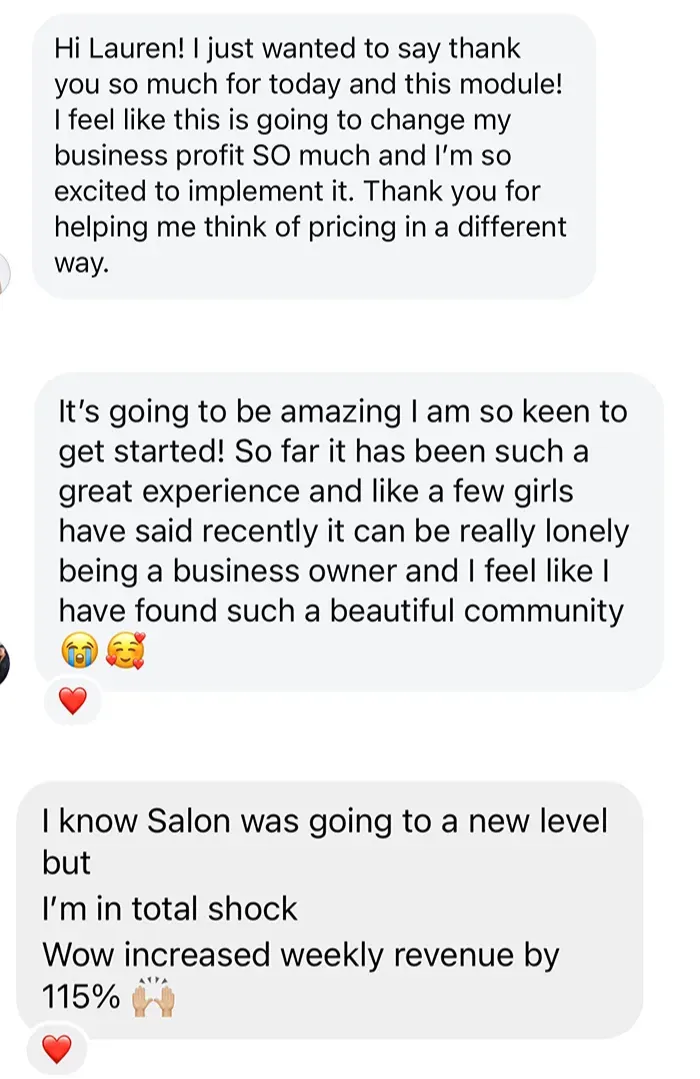I’ve supported more than 150 salon owners through my coaching programs, helping them: